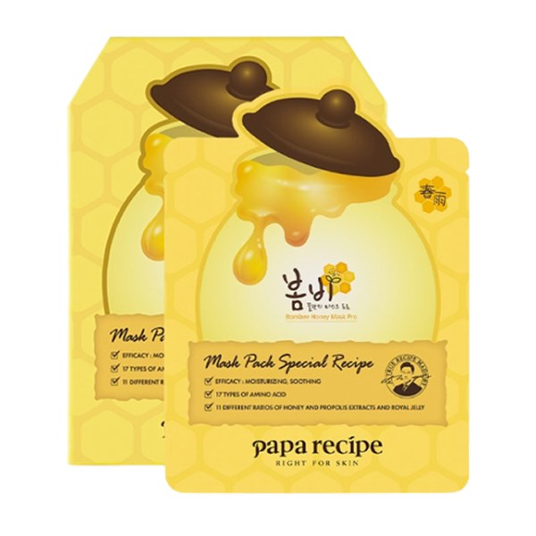 Papa recipe是由一位韩国爸爸为了让小女儿享受最纯淨的呵护,从材料到研製全部都选用最天然的成分,严格把关,让娇嫩的肌肤变得更健康。面膜中87%来自大自然的天然蜂胶和蜂蜜提取物,提供给肌肤营养和水分,敷完之后皮肤有蜜汁般的光泽感,令肌肤营养水润,完全不黏腻。