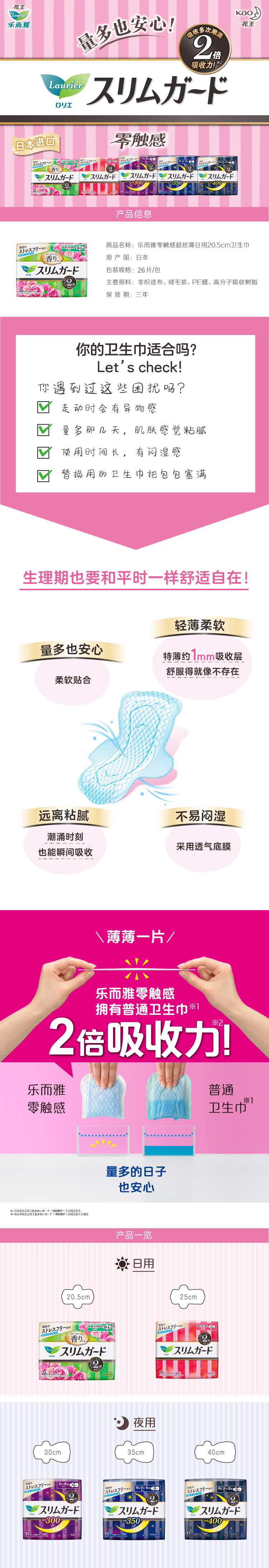 日本花王乐而雅【日用瞬吸超薄20.5cm】零触感护翼型卫生巾26枚 净味玫瑰限定款