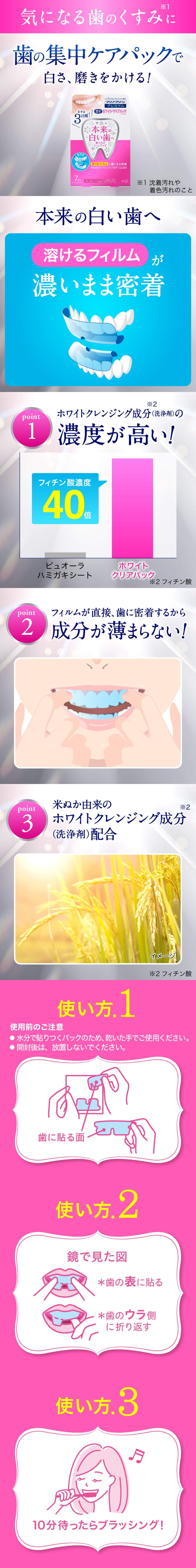 使用新技术可溶解,令亮白分子快速渗透在每一颗的牙齿上,谷物萃取天然清洁成份可安心使用。就算假牙、补过的牙也适用此产品。
